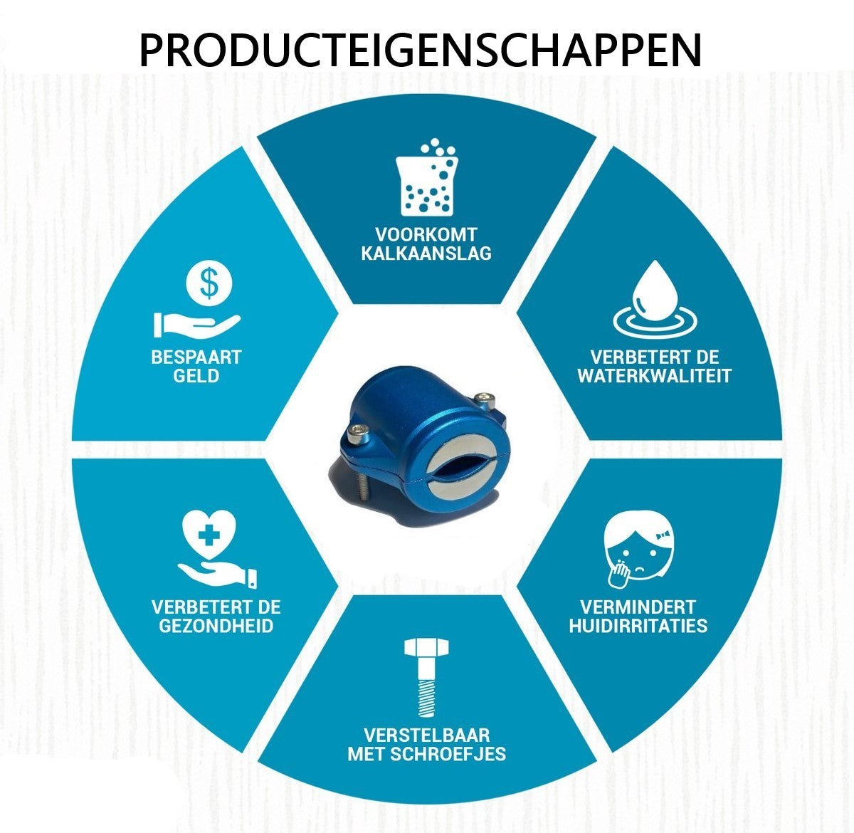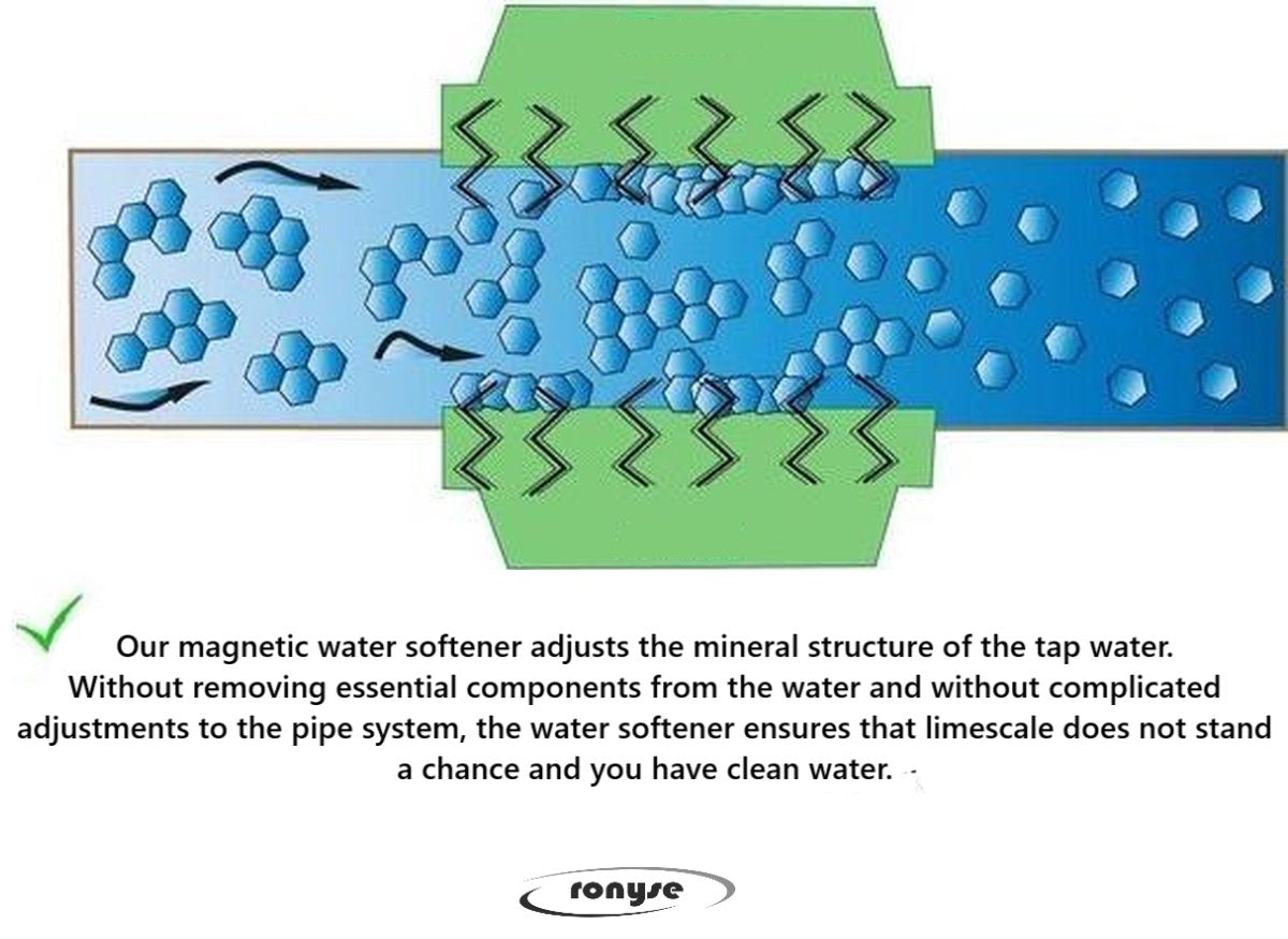 Mit diesem Wasserenthärter hat Kalk keine Chance mehr. Durch die magnetische Strahlung werden die beiden Mineralien getrennt, die Kalk verursachen (Kalzium und Magnesium). Kalk entsteht durch die Verbindung dieser beiden Mineralien. Der Magnet verhindert die Kristallisation dieser Mineralien, sodass Sie keine unangenehmen Auswirkungen von Kalk mehr haben. Bestellen Sie jetzt und genießen Sie so schnell wie möglich weiches Wasser!