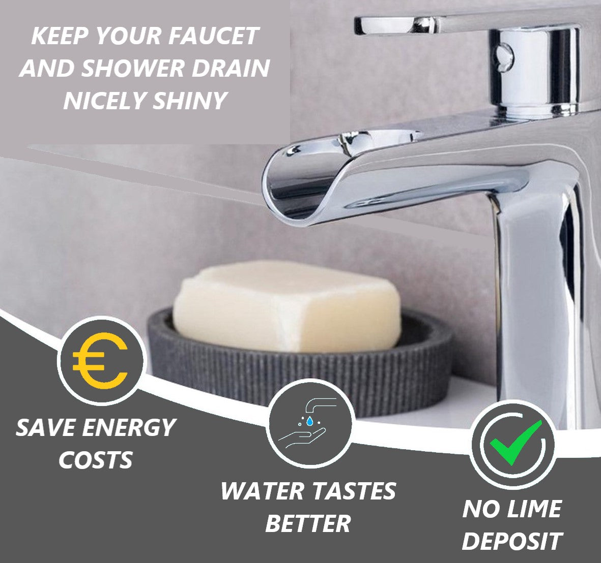 • Kalkablagerungen werden um 80–90 % reduziert